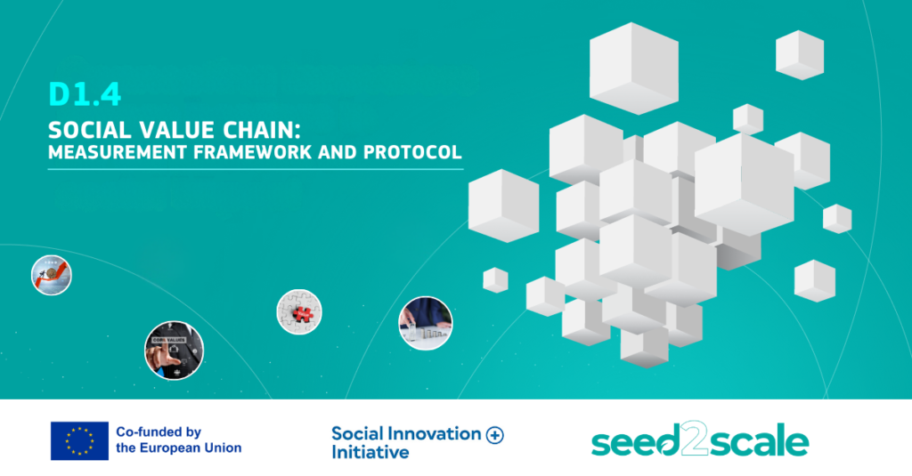 The Social Value chain outlines the main dimensions (impacts, outcomes, and outputs) to be assessed, while the complementary list of indicators are used to operationalise the assessment.